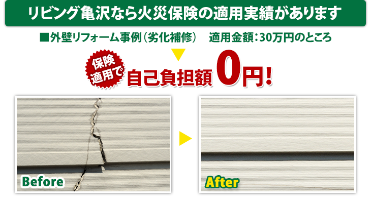 リビング亀沢なら、火災保険の適用金額に応じた工事も可能です。
